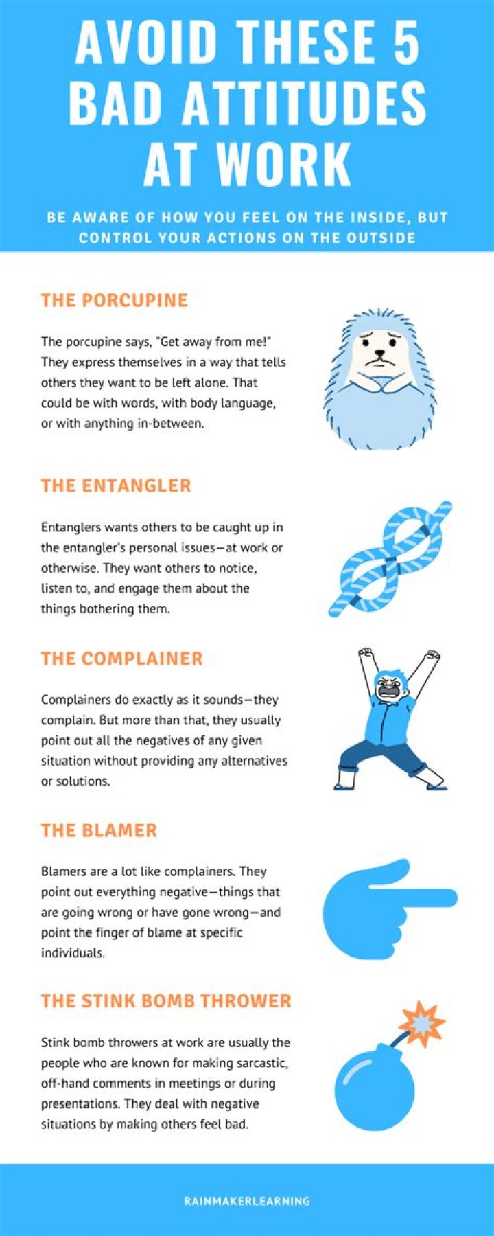 What are some types of bad attitudes at work?