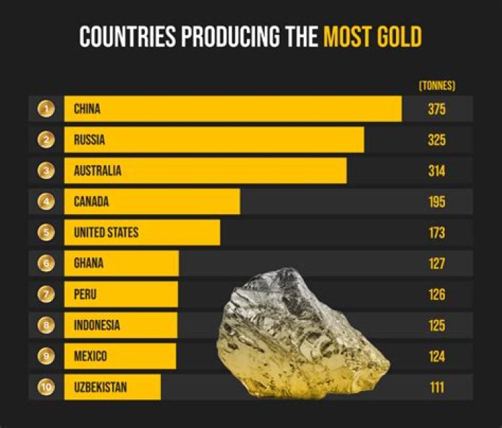Gold production sorted by major countries 2010-2020 In 2020, China’s mines produced an estimated 380 metric tons of gold. China is the largest gold producer in the world.